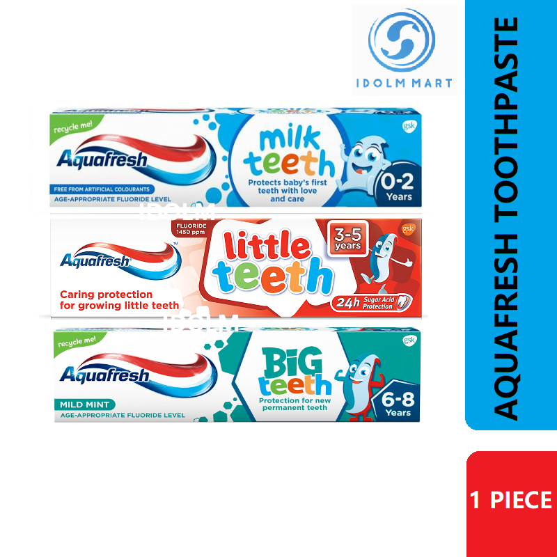 Aquafresh Baby Toothpaste 50ml Milk Teeth/Little Teeth/My Big Teeth Aquafresh Baby Toothpaste it now comes with 0% artificial flavours and sweeteners, and its low abrasive formula ensures gentle cleaning for your baby’s. aquafresh milk teeth toothpaste formulation is highly effective at delivering fluoride to enamel surfaces and helping remineralize early enamel lesions, thereby helping to protect against attacks by sugar acids. aquafresh milk teeth toothpaste is gentle on your. Aquafresh Baby Toothpaste.